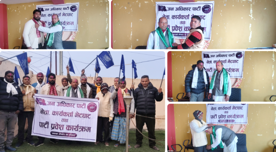 जिल्ला अध्यक्ष गगन देव राउत ‘अहिर’ को अध्यक्षतामा सम्पन्न उक्त कार्यक्रममा पार्टीको नीति, सिद्धान्त र एजेन्डाप्रति ऐक्यबद्धता जनाउँदै विभिन्न राजनीतिक दलका नेता तथा कार्यकर्ताहरू जन अधिकार पार्टीमा प्रवेश गरेका हुन्।
