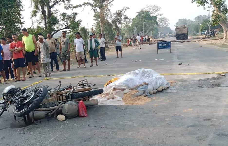 टिपरको ठक्करबाट मोटरसाइकल चालकको मृत्यु, सडकमा शव राखेर राजमार्ग अवरुद्ध