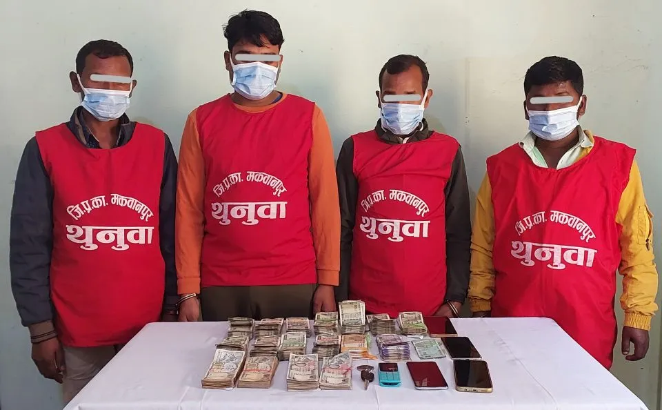 वीरगञ्ज । स्राेत नखुलेकाे भारतिय रुपैयासहित ४ जनालाई प्रहरीले नियन्त्रणमा लिएकाे छ । बिशेष सुचनाको आधारमा प्रहरी चौकी रातोमाटेबाट खटिएको प्रहरी टोलीले मकवानपुरका हेटौडा उपमहानगरपालिकाकाे