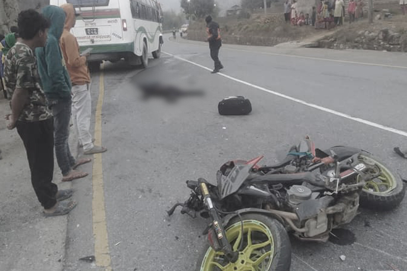बस र मोटरसाइकल ठोक्किँदा एकजनाको मृत्यु